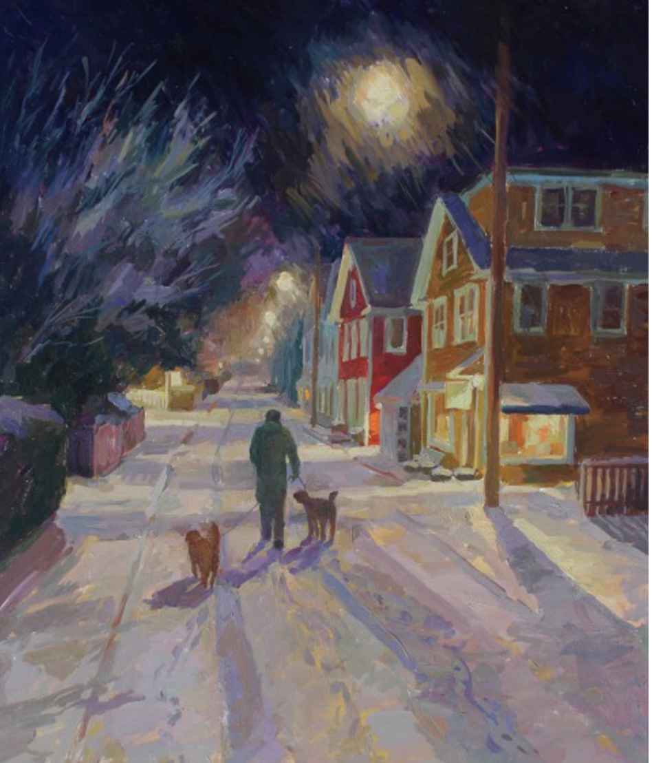 You can find more of her artwork here https://simiemaryles.com/artist/simie-maryles . Simie started painting as a very small child in the suburbs of New York City, drawing to entertain herself and losing herself in the art section of the local library. After a year at the State University of New York at Binghamton and several months traveling in Europe, she began her formal art training at The Ecole des Beaux Arts in Paris, France where she was ‘adopted’ into a family of wine merchants and fell in love with all things French. Returning to New York, she received a scholarship to study painting at The Art Students’ League of NY. Simie first came to Provincetown, on the very tip end of Cape Cod, MA, in the summer of 1974 to work as a pastel portrait artist in the tourist trade. It was there, in Provincetown, that she first began painting landscapes “en plein air” and became intoxicated with outdoor painting and color. Her style of painting, which up until that time was more classical and tonal, reflecting the urban environment she came from, began to shift to a much more intensely colorful and “broken-brushstroke” approach. She was clearly influenced by the bright clear light at the seashore and also the community of Impressionist painters living on Cape Cod. The evolution in Maryles’ painting style and subject matter continued to grow, starting with pastel landscapes of gardens and marshes in sunlight, to a full exploration of mixed media pastel painting (such as acrylic and pastel, sometimes with added marble dust) and finally to a return to oil painting. The sunny garden motif widened to include the moodier romance of evening paintings and then winter night paintings with wind and window lights. The oil paintings, like the pastels, display a skillful use of painting technique that employs broken strokes of brilliant pigment over colorful underpainting. Most notable in Maryles’ painting is her use of light, both sunlight and lamplight, and her ability to evoke powerful emotions. In 1998 Simie Maryles, together with her husband, sculptor and blues musician, Moe Van Dereck, opened their own gallery in Provincetown. Now in its third decade, Simie Maryles Gallery is one of the most renowned galleries in the country, proudly representing a group of the finest representational painters from across the US, Canada and Europe. She has participated in juried and museum exhibitions in New York, Washington, DC, and Los Angeles. In Los Angeles, Maryles had seven successive one-person shows that all sold out. She is a member of the prestigious Oil Painters of America. Her work has been included in numerous books published by Quarto Publishing of London, England, and North Light Books, USA. Maryles has successfully completed corporate commissions in Boston and New York City. Her paintings are included in private and corporate collections throughout the US and in Europe. AND I might add, on a personal note, we are the proud owners of eight of her paintings including one we commissioned. With our annual trips to Provincetown, we’ve developed a friendship with Simie as well as a love for her paintings!