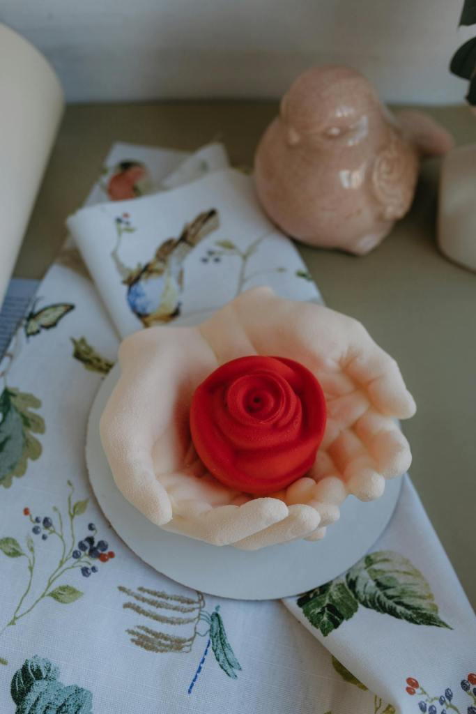 Picture courtesy: Cake in the shape of hands holding a rose by Alina Matveycheva, Pexels.