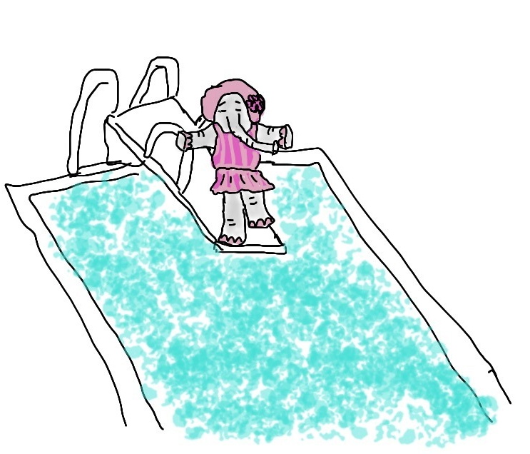 Love the bathing cap on your sweet little elephant k. Will be pondering the unexpected and plan to come up with something poolside real soon 🙂