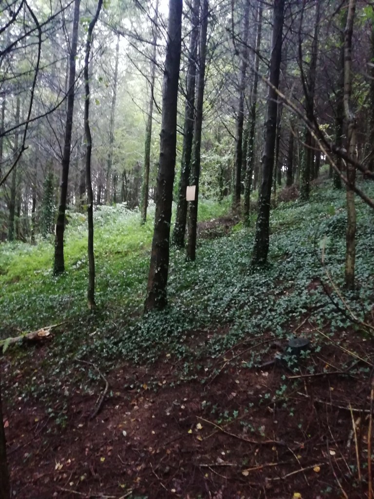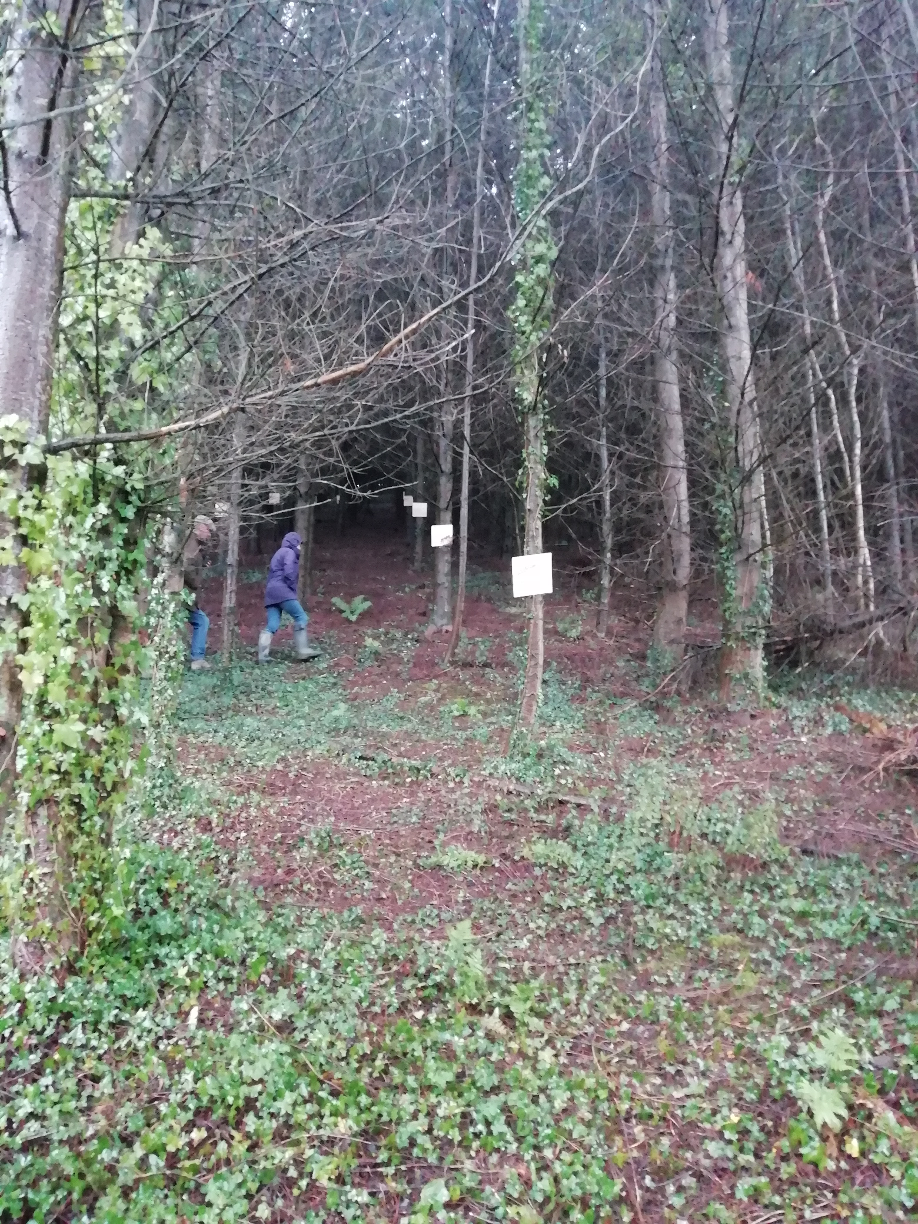 During lockdown I was asked to take part in a project to create a plantation of poems. Katy from Courage Copse, and Bideford Library joined forces for this project. Katy chose 60 trees from her woodland and gave 57 poets the 3 words that located that tree. Each poet had to write a poem between 3 and 12 lines long, including those 3 words. The poems were printed on wood and displayed in the woodland around National Poetry Day (1 October in the UK). I visited my poem on a wet and windy day – as you can see – and it was wonderful to see it there.