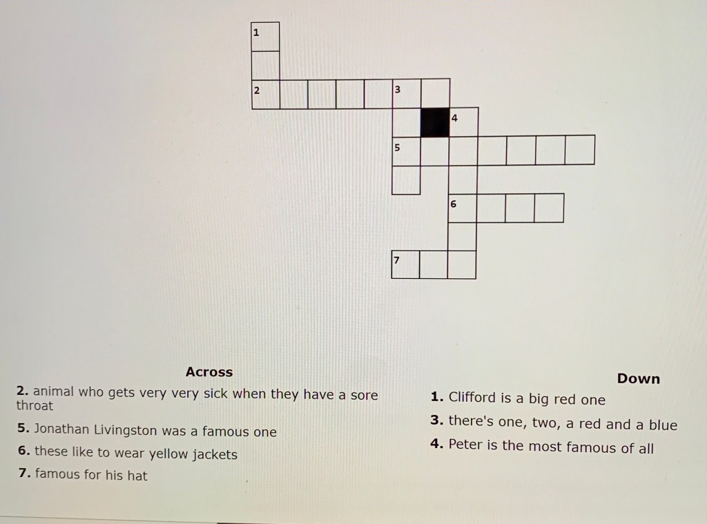 Here’s my try at a fun crossword puzzle for you. Each answer is an animal. Obviously, I’m not going to be offered a job as a crossword puzzle creator by any reputable newspaper!