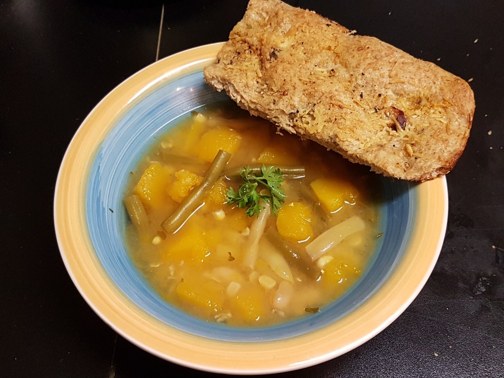 Welcome everyone. I hope the theme has warmed your tummies and your muse. We have freshly baked cheese bread to go with my Thai Basil soup, Traditional Chicken Noodle, Split Pea with Ham and Spicy Black Bean. Any favourites are possible! What is yours?
