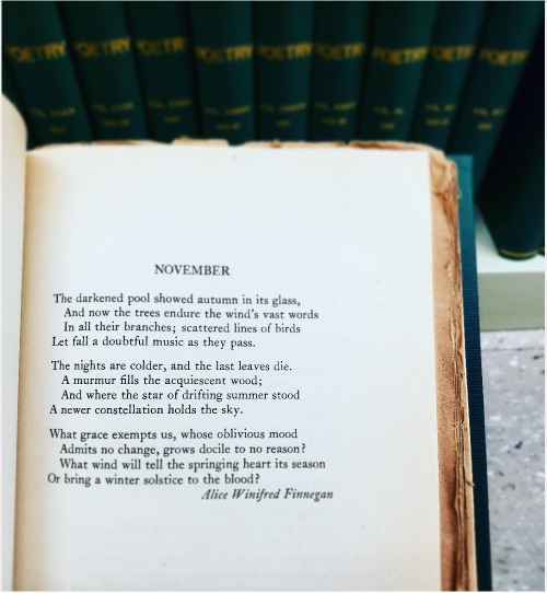 I love this November poem by Alice Winifred Finnegan, Poetry November 1933 Vol. XLIII No. II. Source
