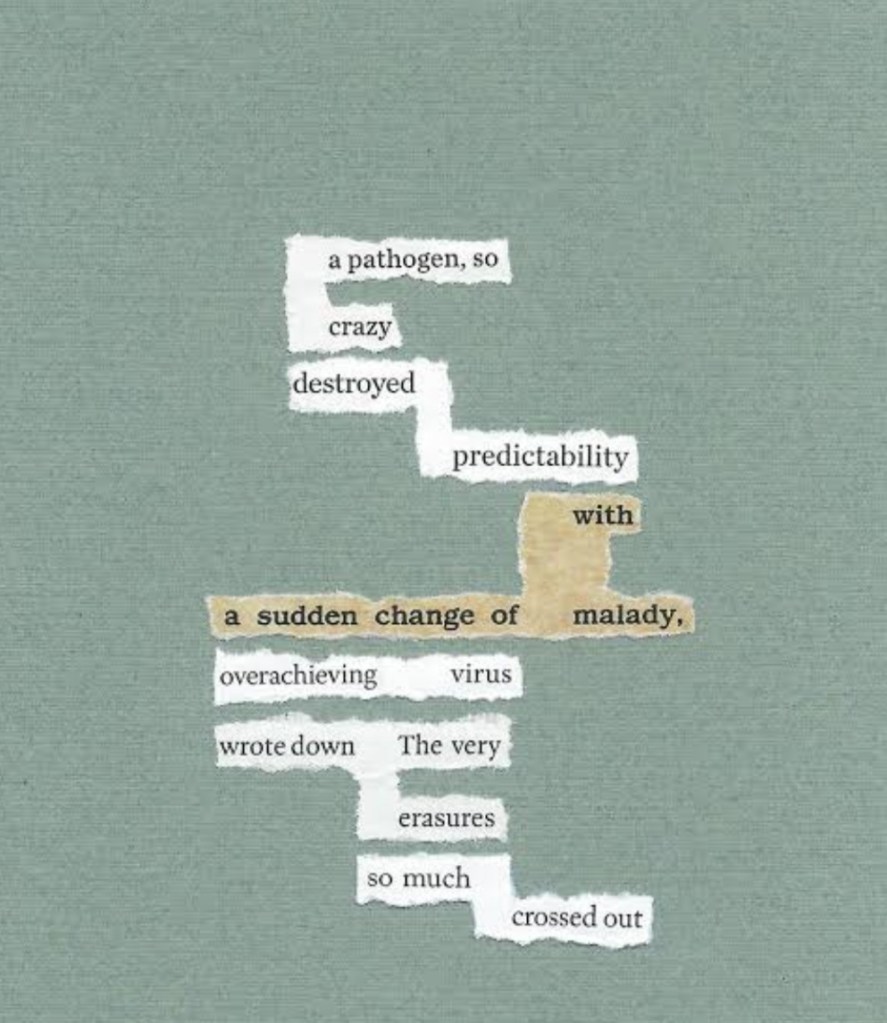 You can read this post by Austin Kleon regarding blackout poems or visit Sunra’s post here. If you checkout her website, you will find more exquisite erasure poems.