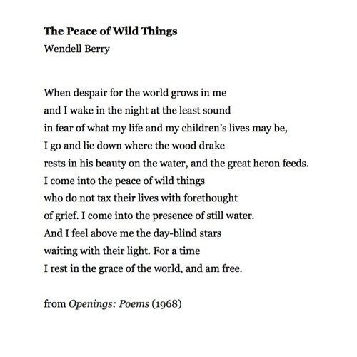 In “The Peace of Wild Things,” Wendell Berry details the worries that sometimes flood our minds and more importantly, how he finds respite.