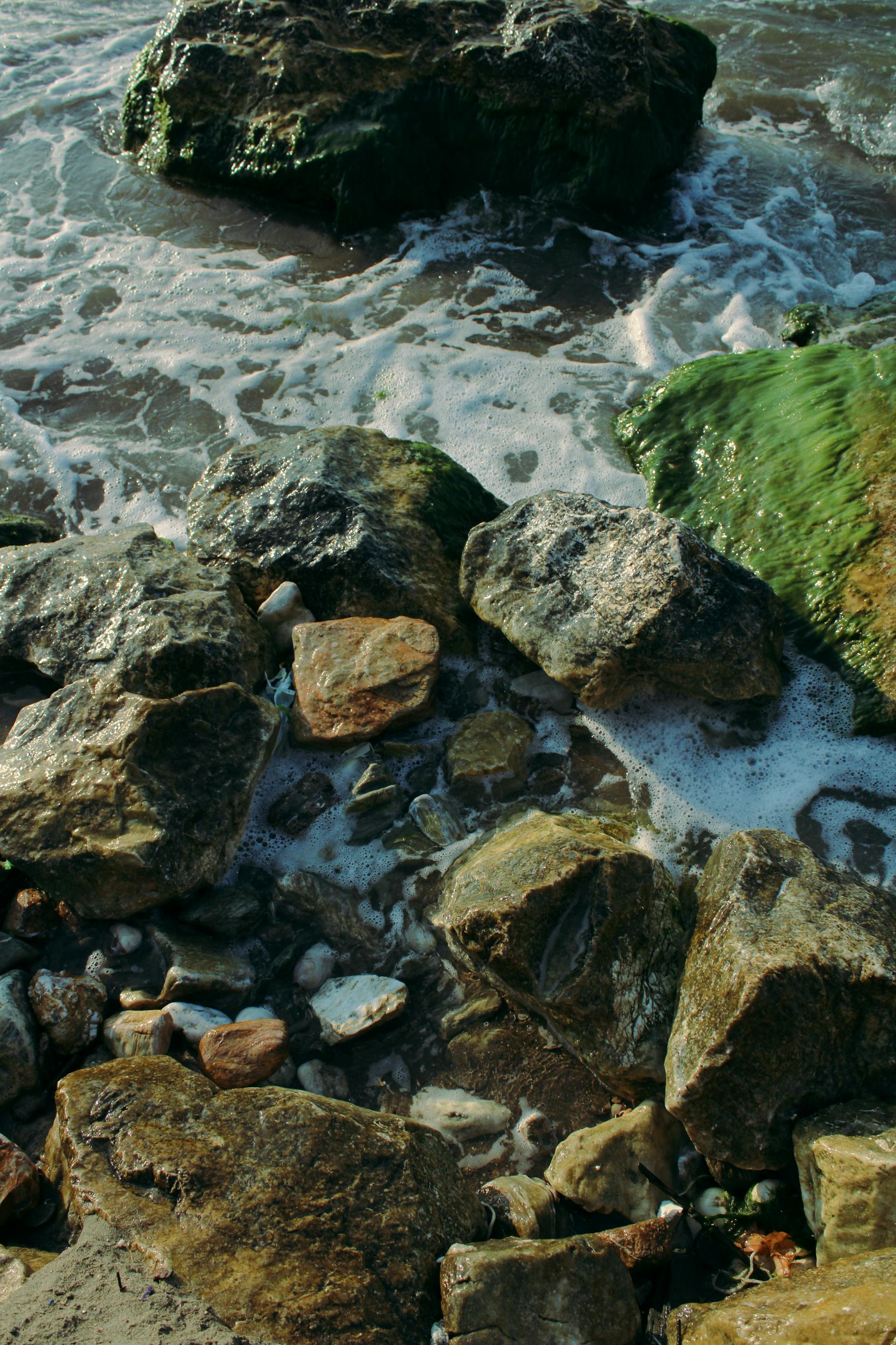 Picture courtesy: Rocky shoreline with seaweed and ocean waves by Zeynep, Pexels.