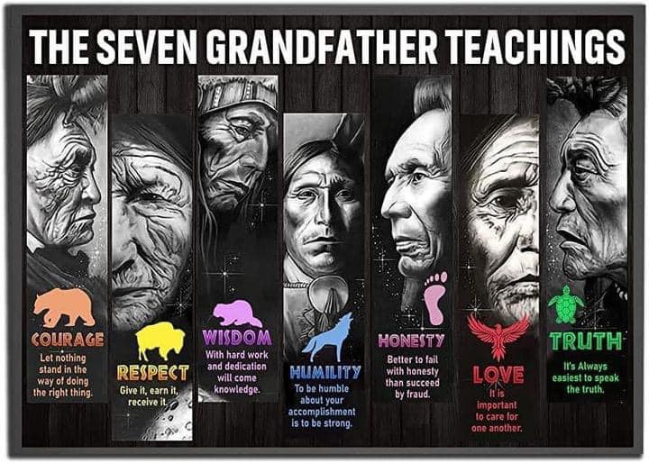 The Seven Grandfather Teachings are interconnected. To live a balanced life, tradition states that they must be used simultaneously as they are dependent on each other. For example, using courage/bravery without wisdom can be disastrous. Together these values act as a chain, strengthening each other to bring harmony to personal lives and community. I think they are a solid foundation for us all.
